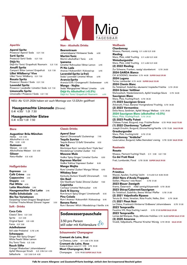 Probier dich durch unsere Getränkekarte. Hochwertige Weine, italienischer Kaffeegenuss, spritzige Cocktails oder hausgemachte Limonaden und würziger Chai. Genuss pur!