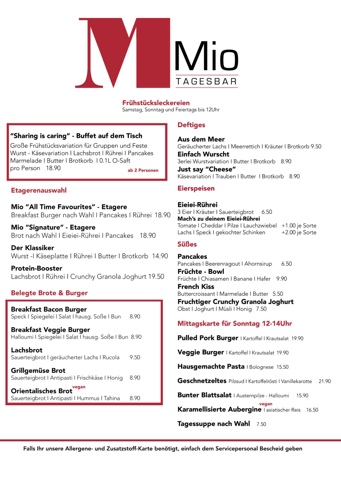 Wie könnte man besser in den Tag starten als mit einem richtig leckeren, ausgiebigen Frühstück? Samstag, Sonntag und Feiertags könnt ihr bei uns frühstücken und brunchen. Genießt unsere Etageren und teilt diese mit euren Liebsten. Vom Rührei, über Käse, Frühstücksburger oder Sandwiches bieten wir für jeden Geschmack genau das Richtige. Natürlich haben wir auch vegane und vegetarische Optionen mit auf der Karte.